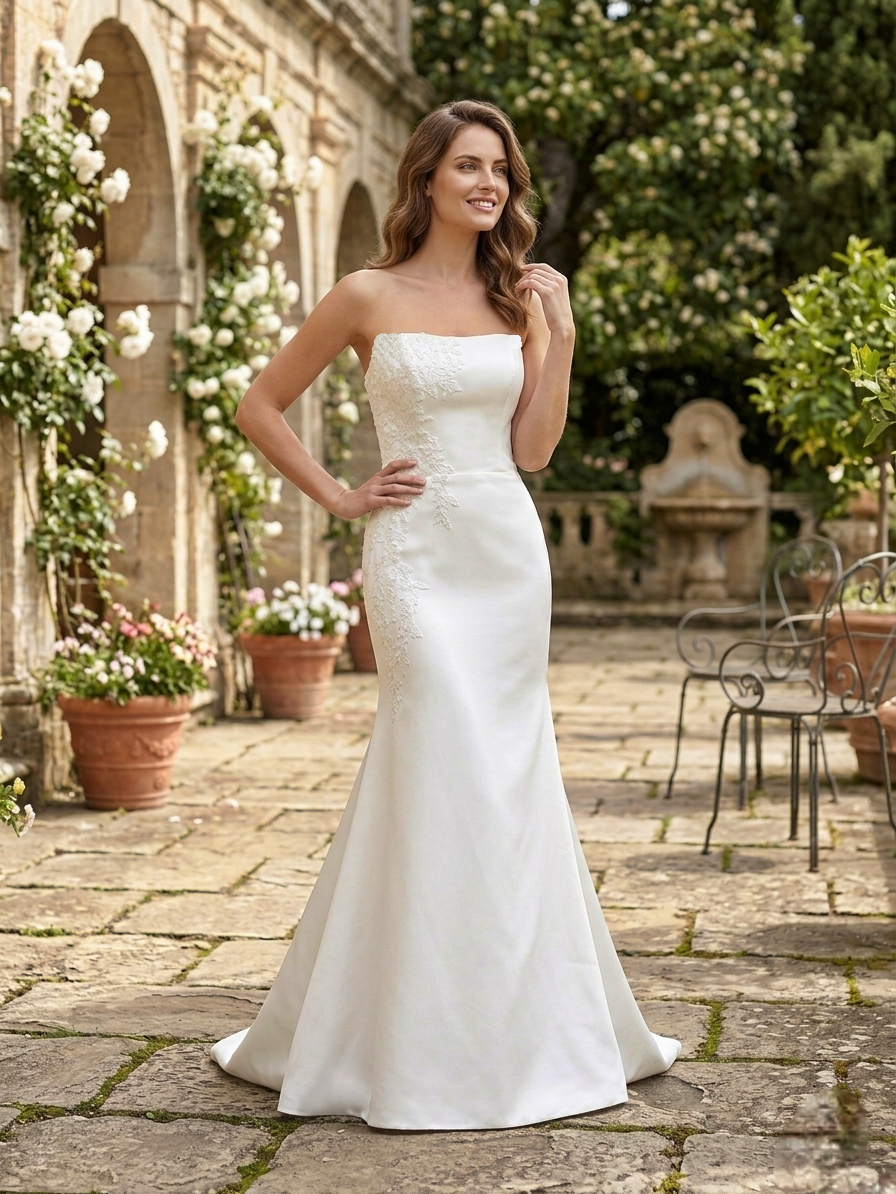 Alakformáló Sellő Alap: Az uszály nélkül a ruha egy kecses, alakot követő fazonná válik, amely kiemeli a vonalaidat és maximális mozgásszabadságot biztosít.