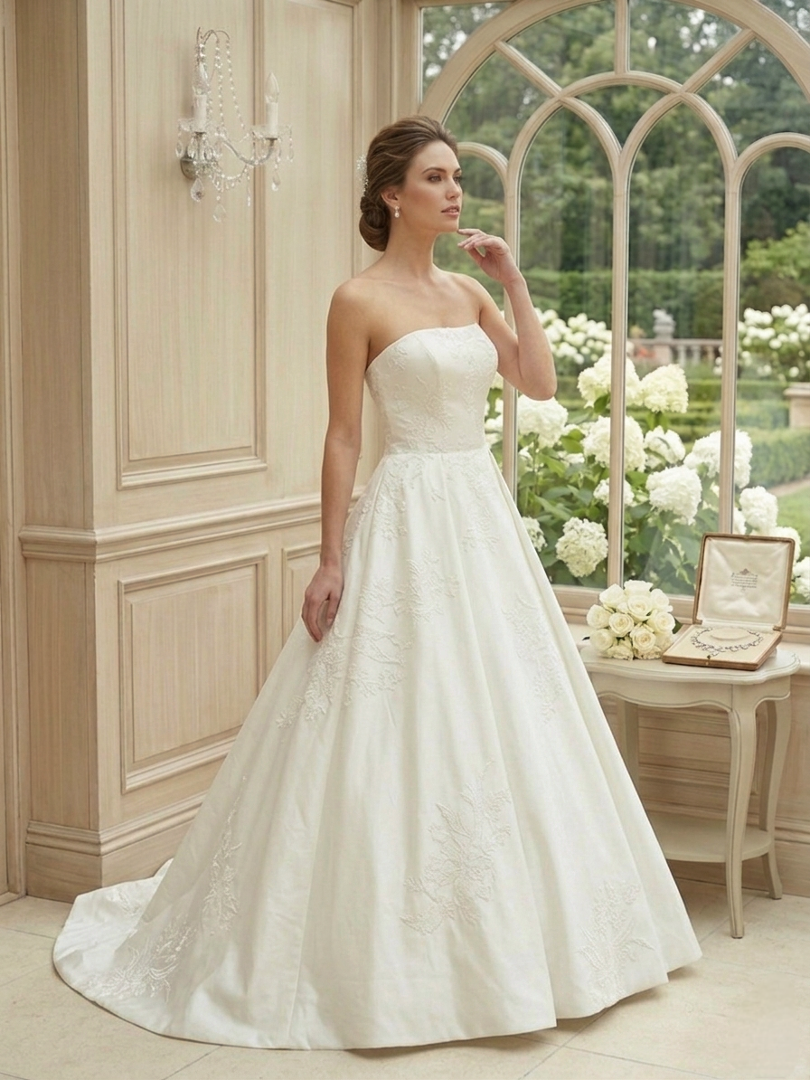 Ez a fazon a legtöbb alkaton csodásan mutat, hiszen az A-vonalú szoknya jótékonyan hangsúlyozza a derekat. Tökéletes választás nagyszabású templomi esküvőkhöz, elegáns kastélyszállókba vagy bármilyen helyszínre, ahol a cél a klasszikus, előkelő megjelenés.
