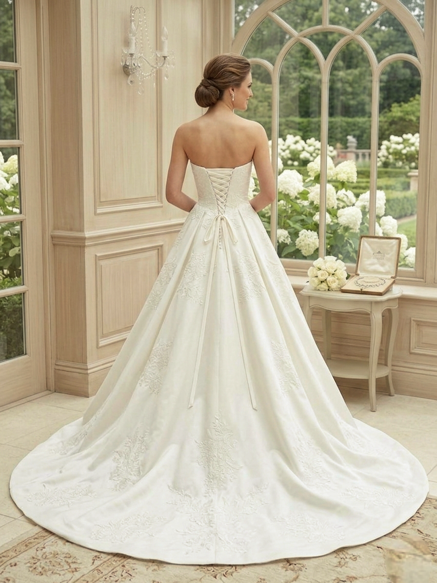 Klasszikus Királylányos Pompa: Hímzett Csipkés Mikádó Selyem Menyasszonyi Ruha