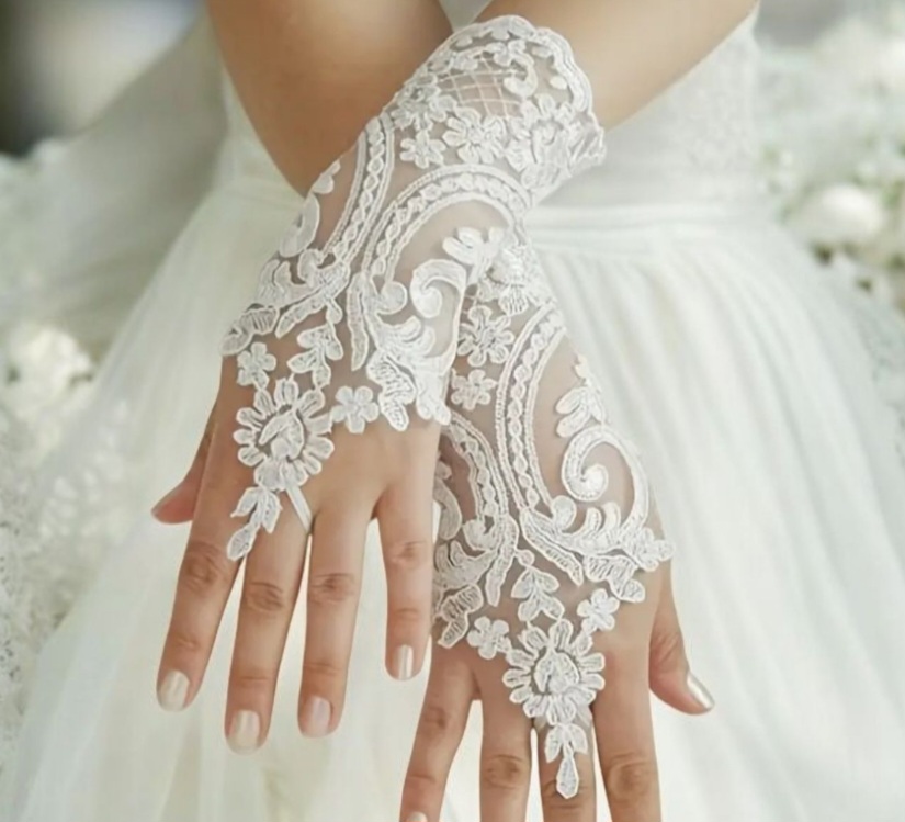 fehér csipke menyasszonyi kesztyű