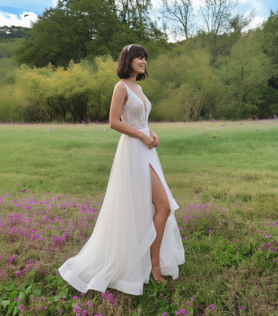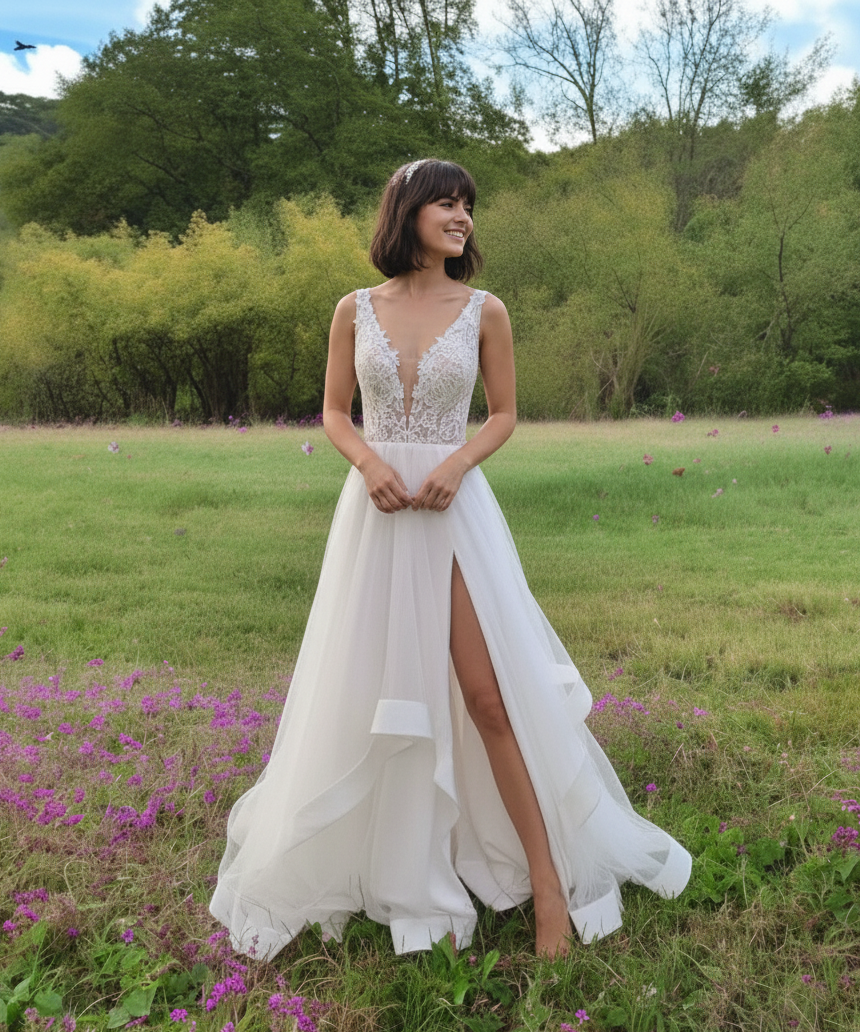 Igazán látványos, természet közeli, lágy és kényelmes menyasszonyi ruha.