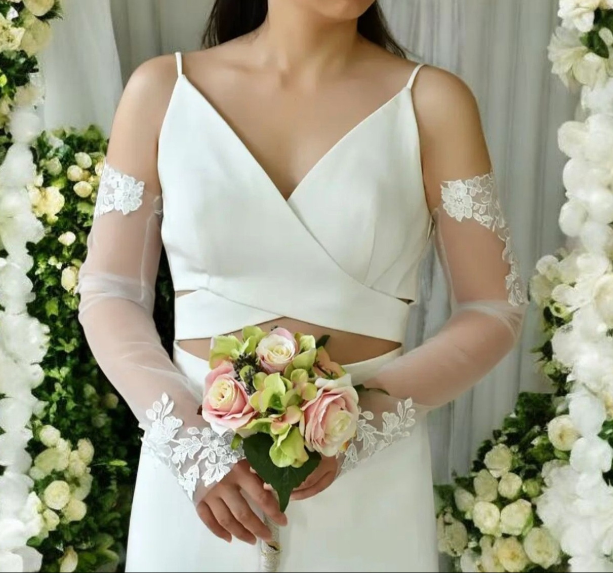 Összességében egy ilyen fehér, menyasszonyi kesztyű tökéletes választás lehet azoknak a menyasszonyoknak, akik elegáns, mégis lágyan romantikus összhatást szeretnének elérni a nagy napon.