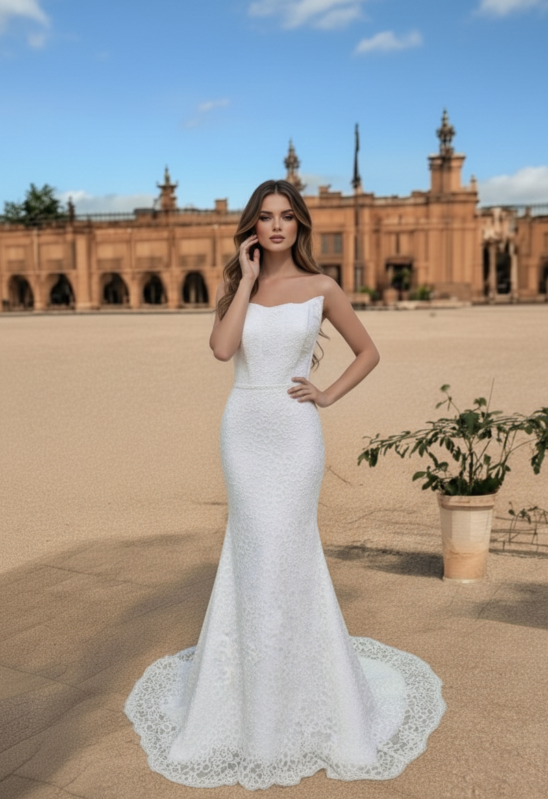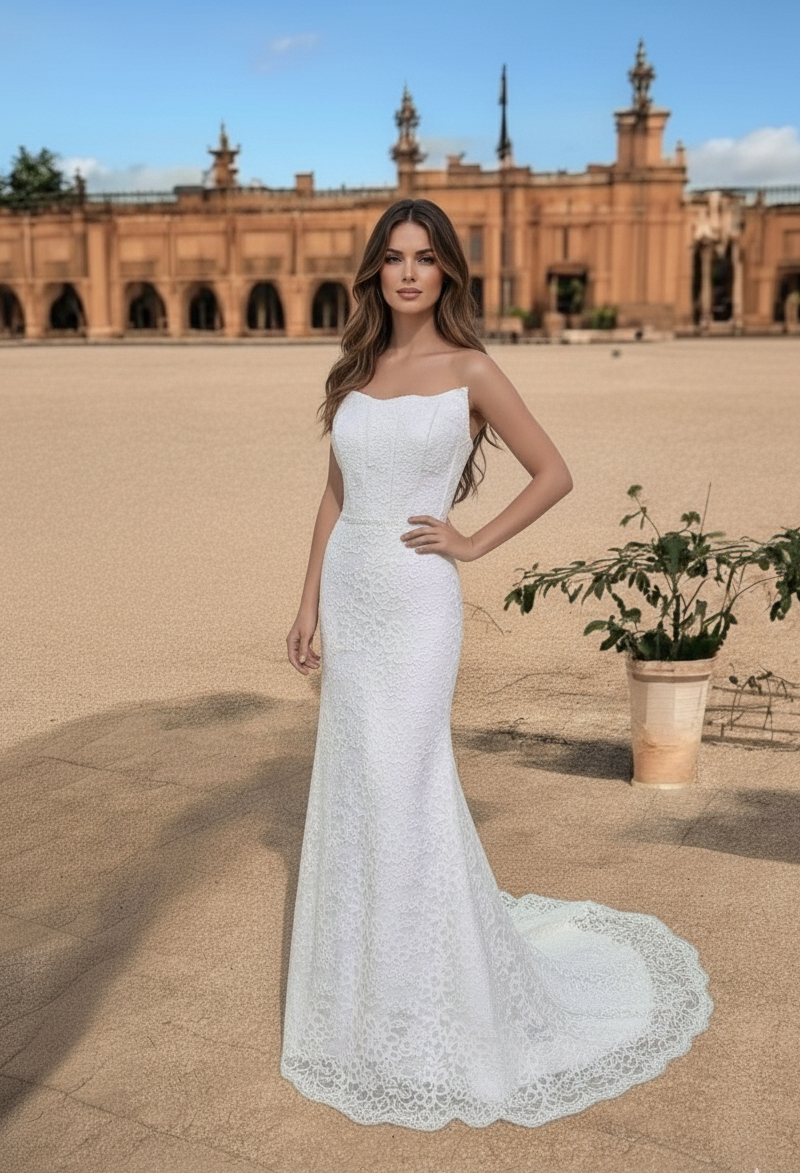 Ez a típusú ruha tökéletes választás azoknak a menyasszonyoknak, akik egyszerre szeretnének nőies, kifinomult és romantikus megjelenést.