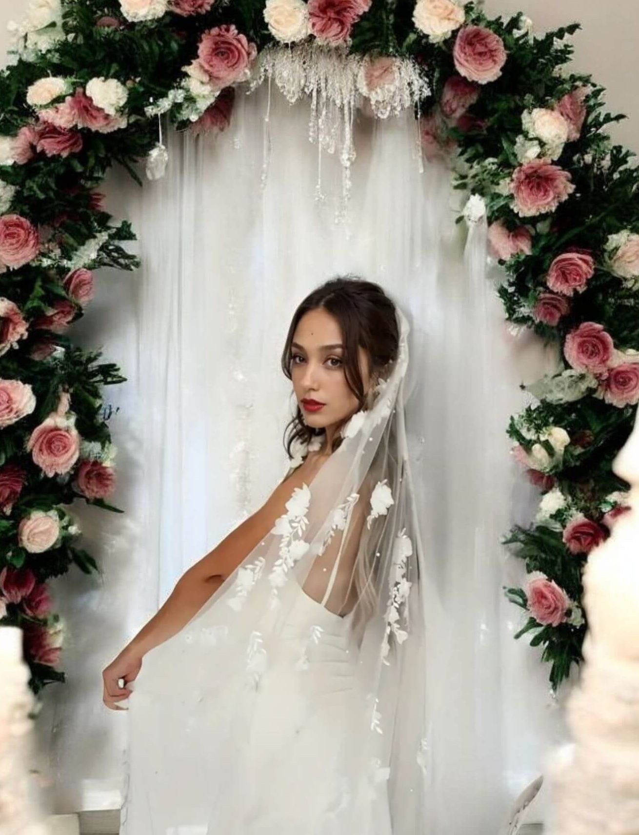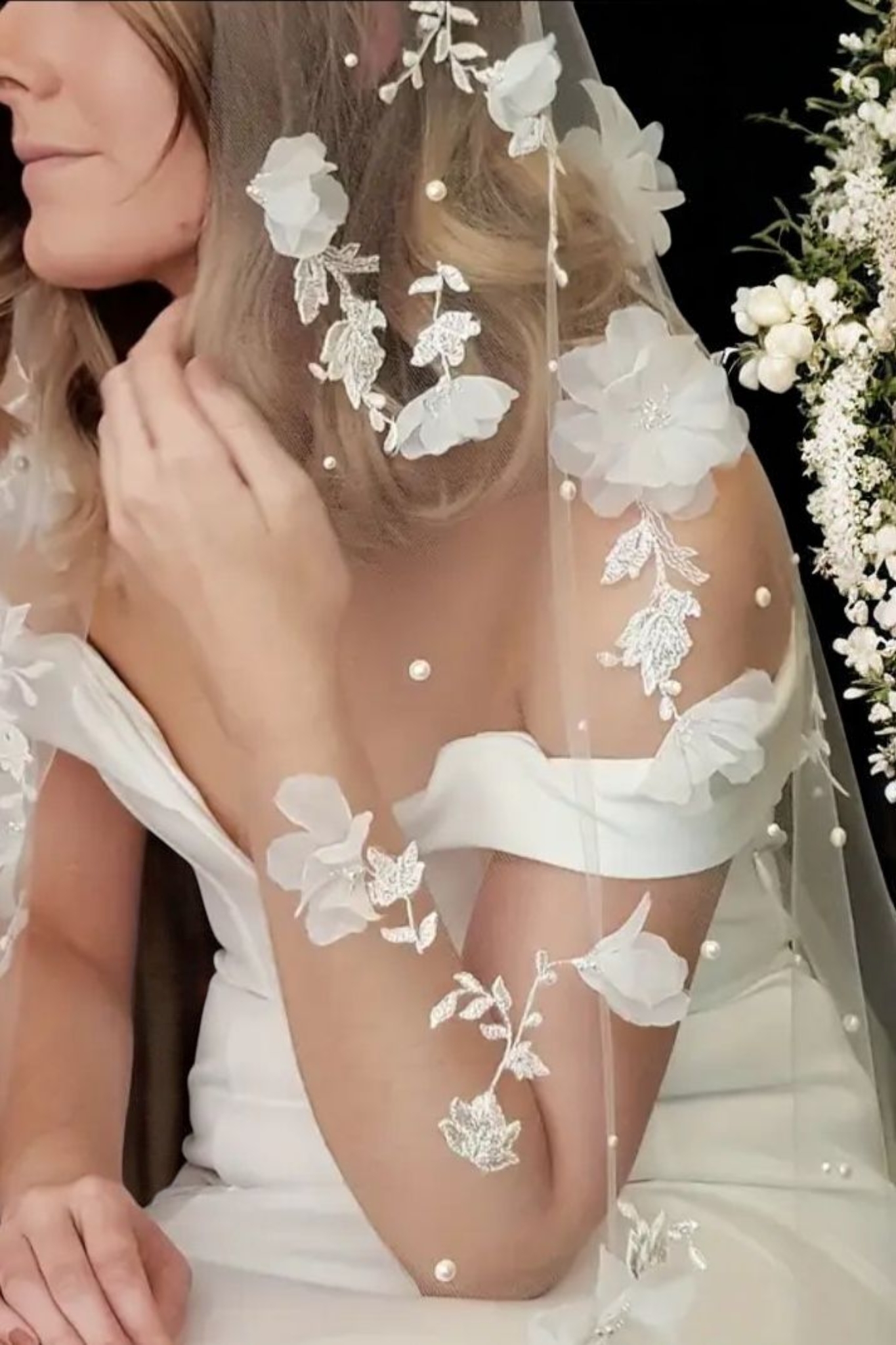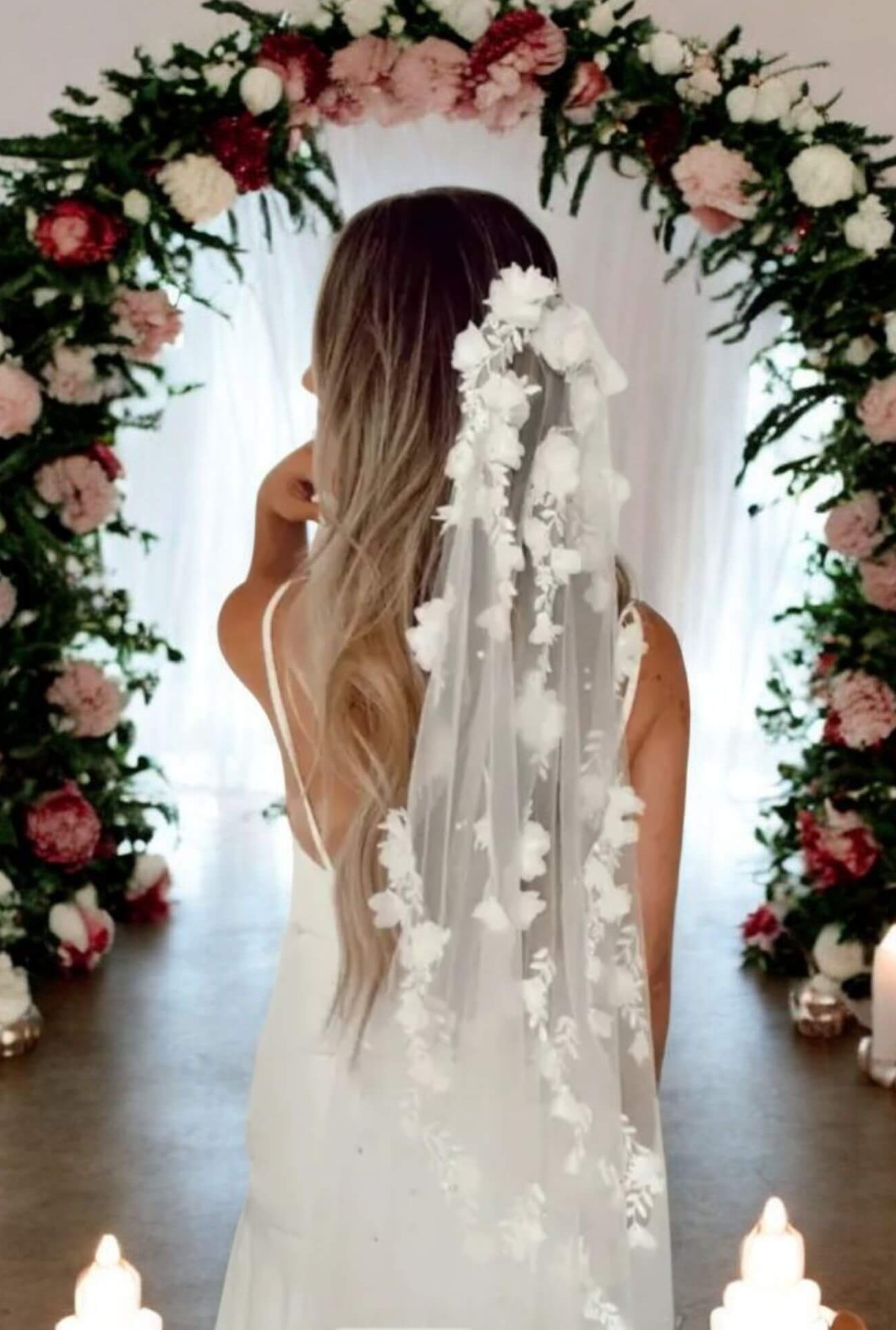 2 rétegű 3d csipkés menyasszonyi fátyol, fátyolfésűvel ellátva