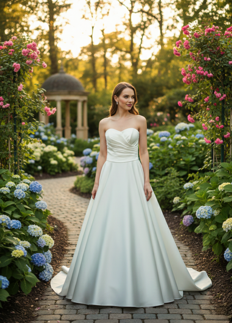 Pánt nélküli fazon: A ruha vállnélküli, ami kiemeli a nyakat és a vállakat.