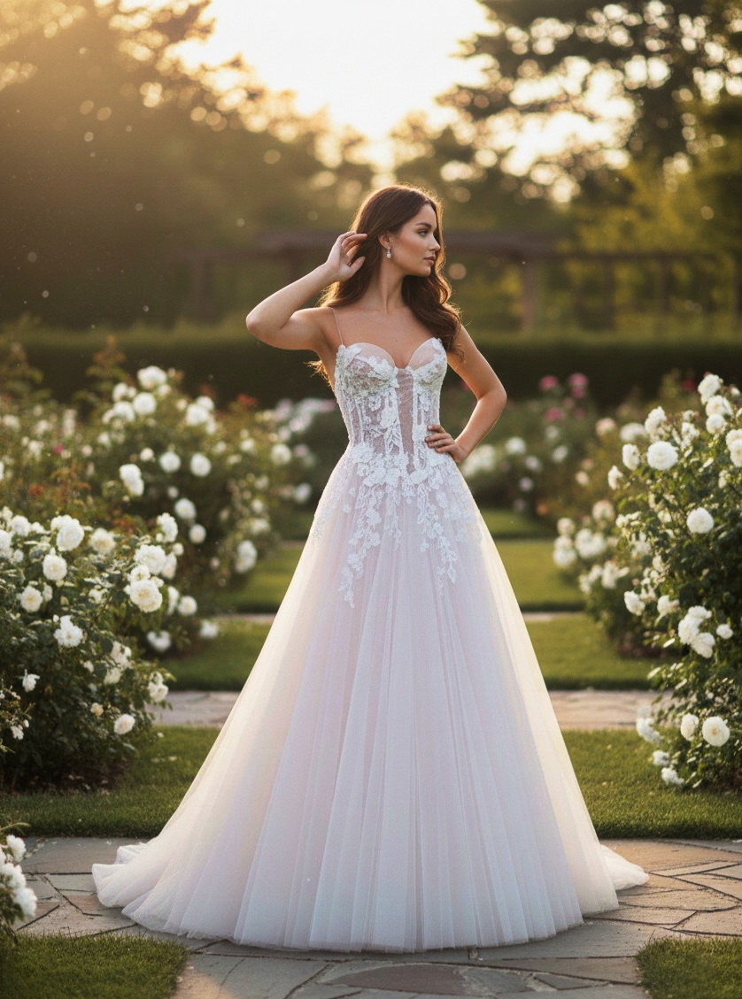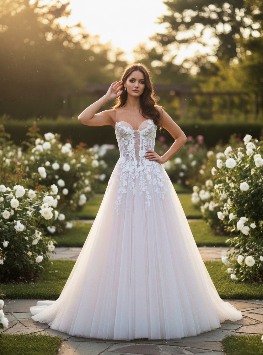 Anyag: Több rétegű, könnyed tüllből készült, ami lágy esést és hercegnős volument ad a ruhának.