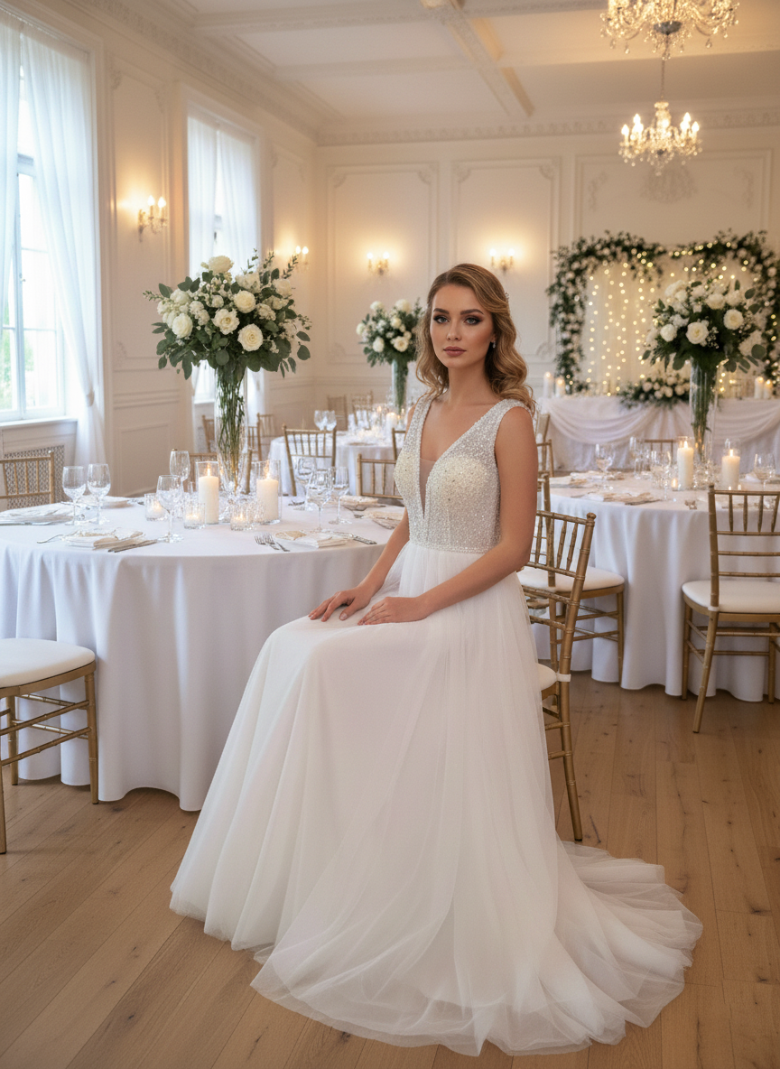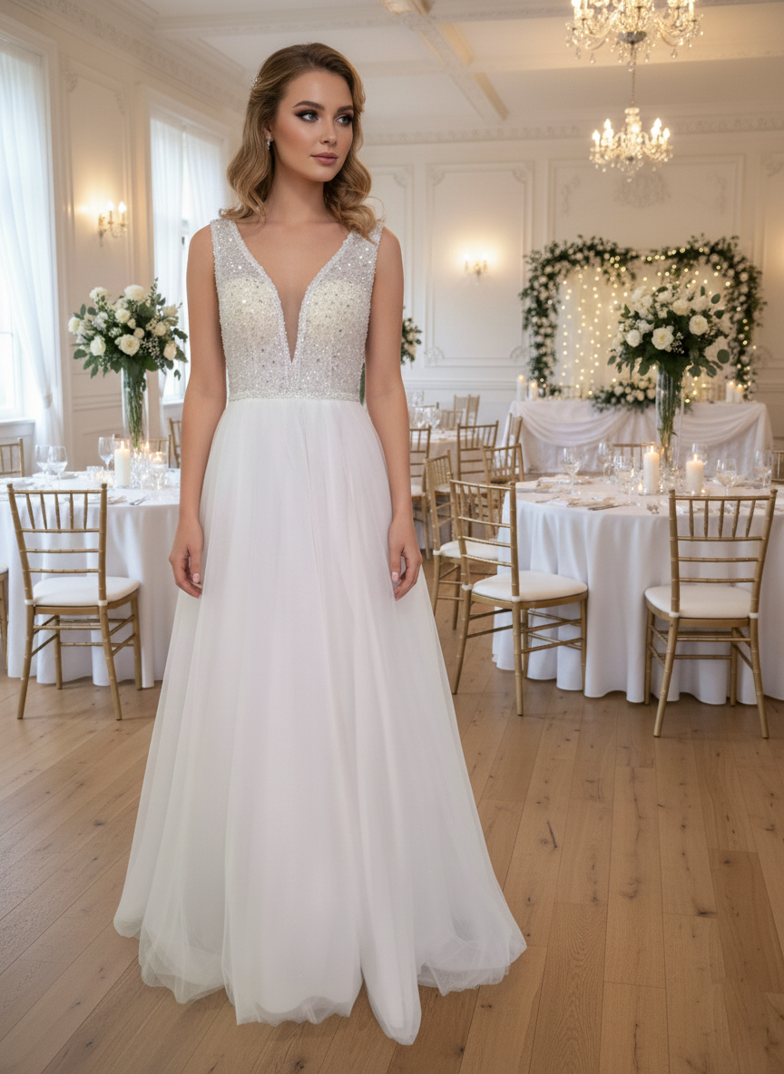 Az A-vonalú menyasszonyi ruha szinte kivétel nélkül minden menyasszonynak jól áll, bátran próbáld fel te is!