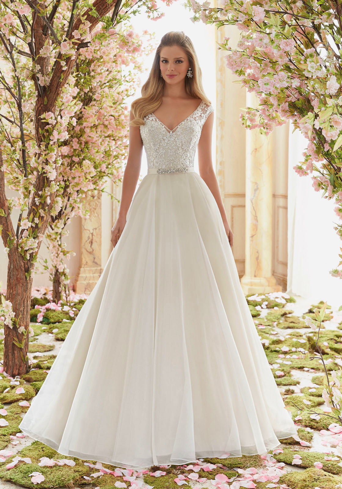 Stílus: Az összhatás egyszerre tündéri és fenséges, kiváló választás lehet egy tavaszi, kerti esküvőhöz vagy egy elegáns kastélyszertartáshoz is.